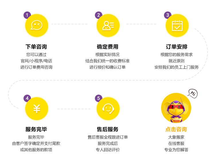 大象搬家,將不斷進取,服務好每一位顧客是我們的終極目標,并立志成為中國一流的、新時代的搬家、到家服務品牌。攜手大象,選擇大象搬家,您的家庭事業必將順風順水,一路繁花似錦。